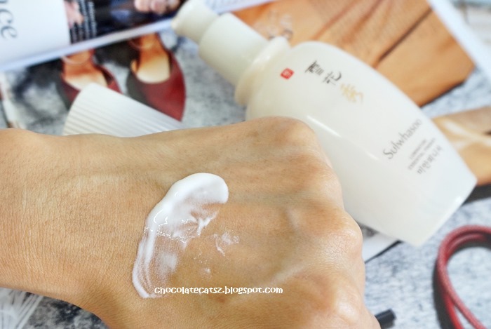 The Luminature Essential Finisher comes in bottle wrapped in Korean traditional mother-of-pearl inlay inspired by a Korean artist who specialises in mother-of-pearl art. The pump dispenser easily controls the amount needed in the application, so you don't end up with extra product. The texture is like a really light cream that absorbs easily enough. The colour although white, has a light pink iridescent base which is not obvious when applied but I noticed it when I left some product on the back of my hand for a few seconds. So that's part of the ingredient that's meant to give the complexion that luminous glow while locking in all the skin care products used before it.